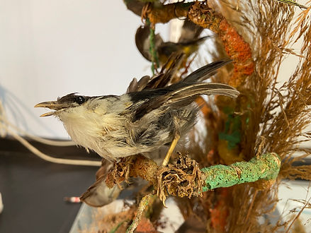 This object, owned by the Buffalo Museum of Science, is a decorative piece that was made to grace the mantles of the Victorian home. It would have originally been displayed with a fitted glass cloche for protection, but that component has long been lost. The bird species are mainly from South and Central America, with the bottom-most black bird being native to Asia. The page of this website devoted to research and analysis can be found here. My full thesis on the research and treatment of this object can be downloaded here.